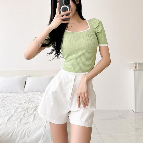 [다잇템]여자 돌핀 색상 핫팬츠 콘트라스트 랍빠 반바지 (10636592A)