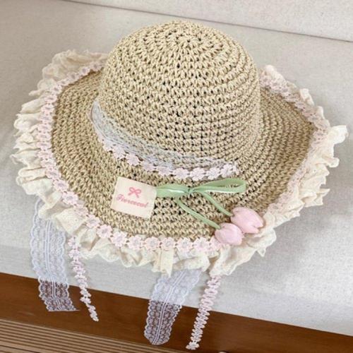 밀짚햇 모자 여성 벙거지 리본 해변 관광 WFMB8L5