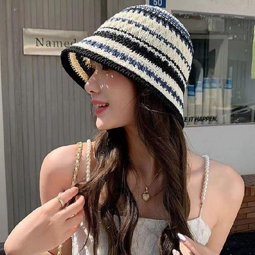 여성 밀짚 버킷햇 모자 휴양지 여름 해변 WFMB8M4