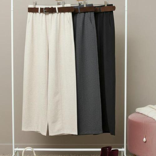 [옷자락]여자 절개 니트팬츠 와이드핏 가죽벨트 출근룩 바지