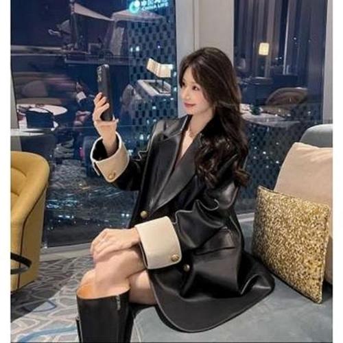 여성 가을 멜라즈 캐주얼 루스핏 가죽 자켓