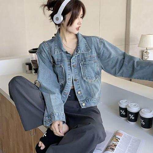 [에이치플러스몰]여성 크롭청자켓 루즈핏 데님 아우터 캐주얼 간절기룩