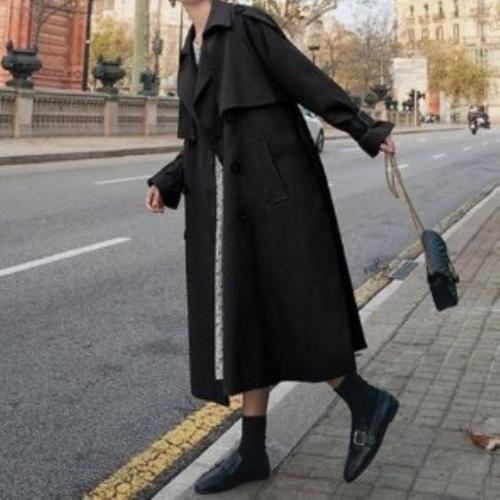 [옷자락]여자 클래식 루즈핏 벨티드 더블버튼 가을 간절기 롱 트렌치코트