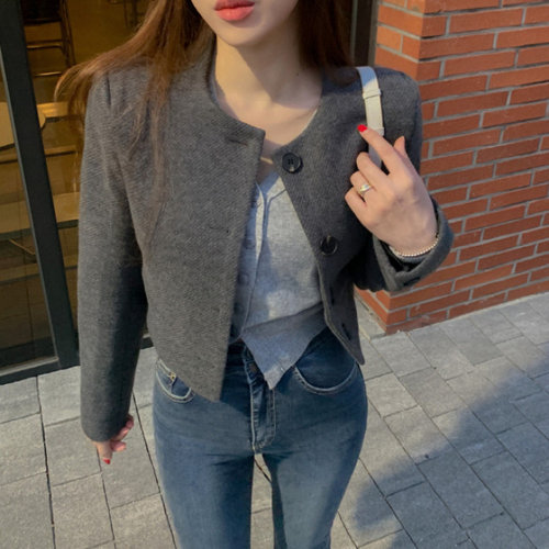 워너비뮤즈 / 겨울까지쭉 퀄대박 노카라 숏 울 코트 크롭 자켓
