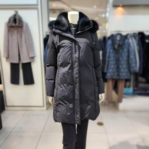 [조순희]고급스럽고 캐쥬얼한 카라밍크 안감 전체 토끼털 거위털 패딩코트 FMWC522 BK_BP