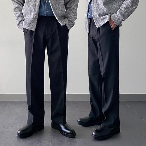 [모노폴로지][기모추가] 원턱 세미 와이드 슬랙스 캐주얼 겨울 핀턱 정장 바지 출근룩 면접 블랙 슬랙스