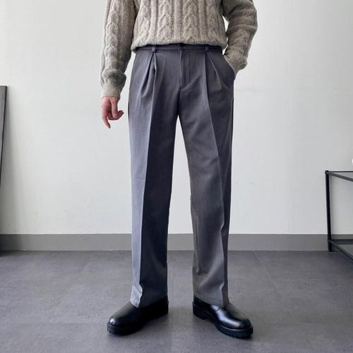 [모노폴로지]겨울 기모 핀턱 정장 바지 출근룩 슬렉스 따뜻한 투턱 세미 와이드 슬랙스 2color