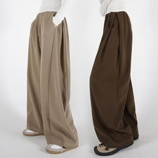 [오버나인] 여자 여성용 겨울용 와이드 코듀로이 옆핀턱 기모 트레이닝 팬츠 바지