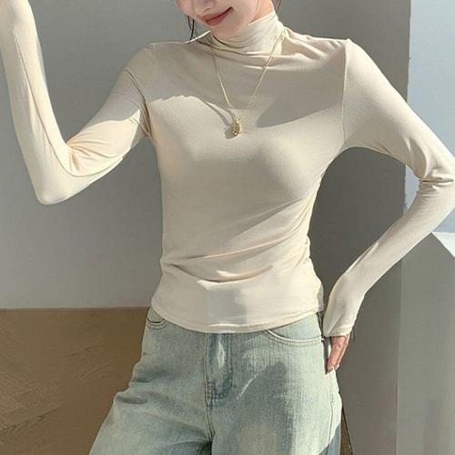 1+1 여성 폴라티 슬림핏 하이넥 긴팔 티셔츠 모달 반폴라티 2매입 봄 가을 여자 목폴라 긴팔티 YJW
