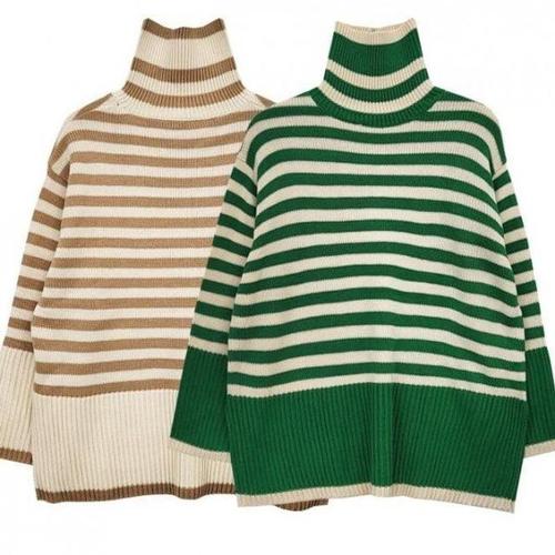 니트목티 터틀넥 스트라이프 폴라니트 여성용 두 WFLMF56