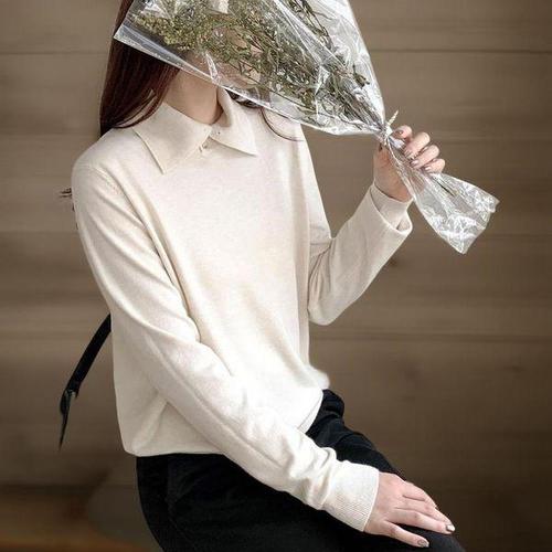 [신상오픈런]여성 긴팔카라티 목버튼 무지 가을 데일리 니트