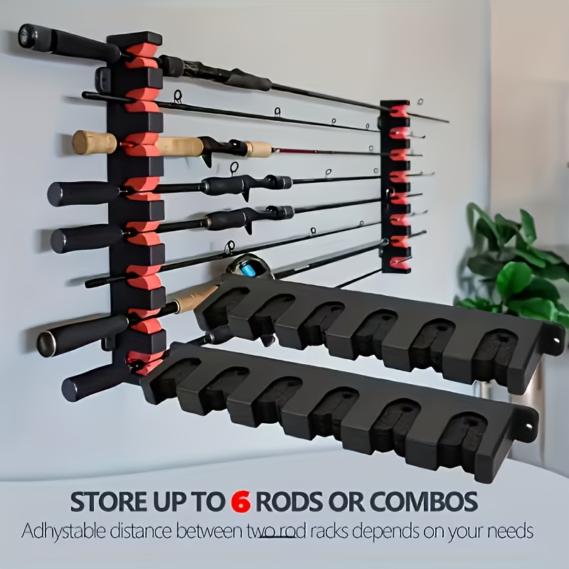 TEMU 고강도 낚싯대 홀더 벽걸이형 - 높이 조절 및 수평/수직 보관 가능 - 공간 절약형 블랙 로드 스탠드, 캐빈, 낚시용품점용 - 폴 팁 호환 (드릴링 필요 없음)