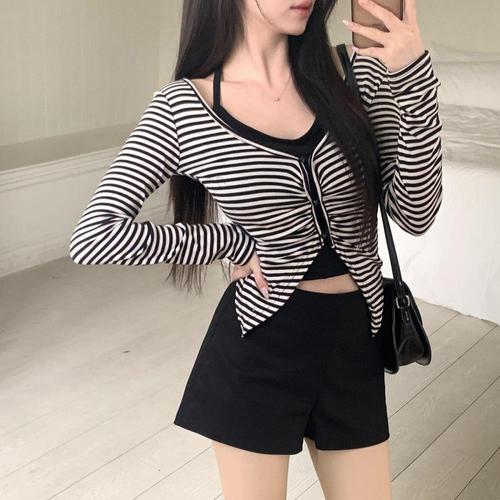 벨트무료 여성 봄여름 MRDIA-WHIP 고탄력 면스판 오버올 솔리드 하이웨스트 레그 반바지 3칼라