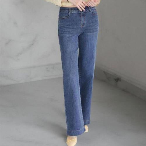 [다잇템_패션]여성 백밴딩 세미배기핏 진청 데님바지 가을용