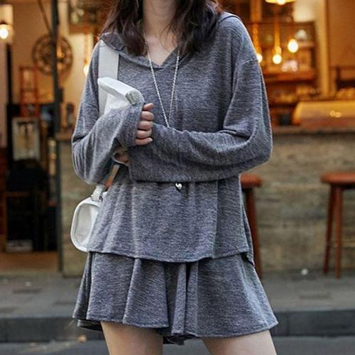 치마반바지 투피스세트 여자 신규스포츠웨어 머스트해브 긴팔후드 WFJIVOG