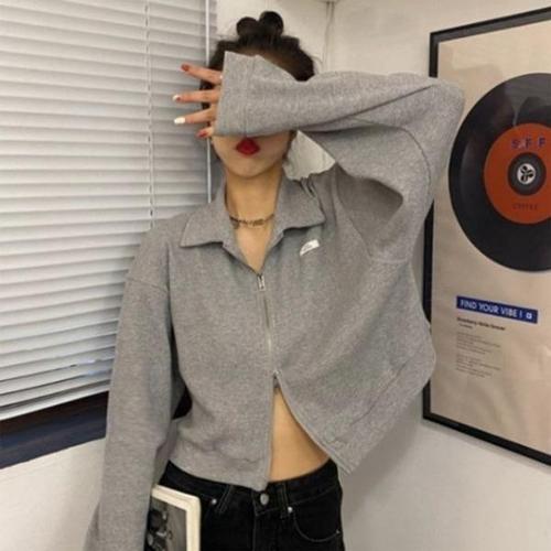 [엄지척]심플투웨이카라짚업 크롭양지퍼여성자켓(그레이)2XL_20338923_667501