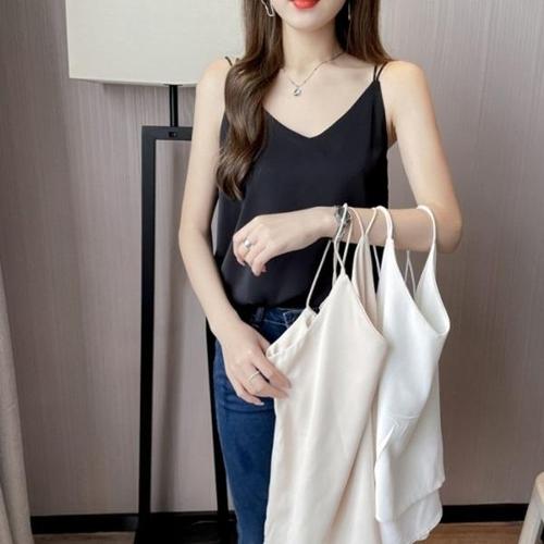 |CHT94EC|여성용 크롭 나시티 이중끈 레이어드 캡내장 데일리 탑