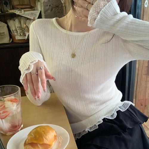 레이스프릴 골지 니트티 여리핏 러블리 데일리 감성룩 WFL0JBG