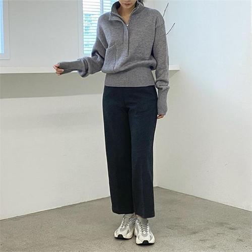 [셀러허브_여성트랜드패션]MZ 반목 롱니트티 하프넥 반집업 티셔츠