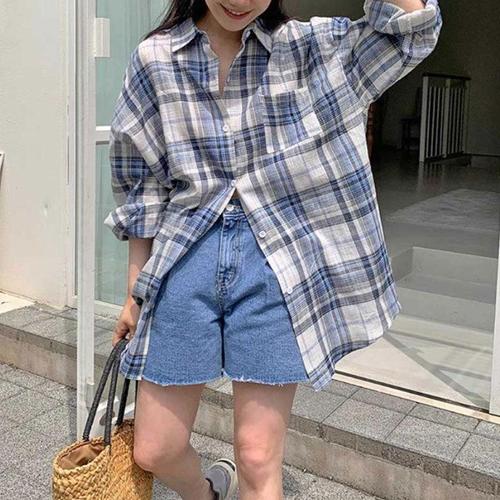 [굿쇼핑몰_의류]여성 시원한 오버핏 체크 롱셔츠