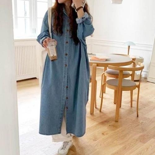 [엄지척]여자 심플 데이트룩 사계절 청 롱원피스 데님 롱셔츠_19952858_667501
