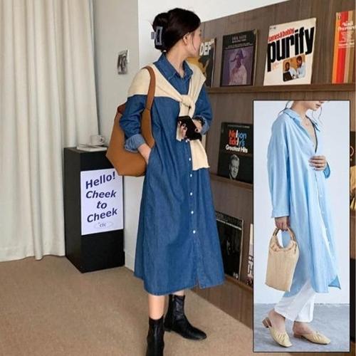 [엄지척]여자 2컬러 캐주얼 봄 가을 롱셔츠 데님남방 청원피스_19952861_667501