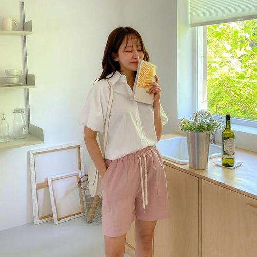 [신상오픈런]여성 단색 린넨 코튼 허리 스트링 밴딩 숏팬츠
