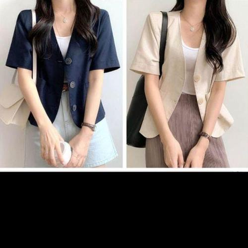 [에이치플러스몰]반팔단추자켓 여성린넨마이 캐주얼 반팔마이 정장 필