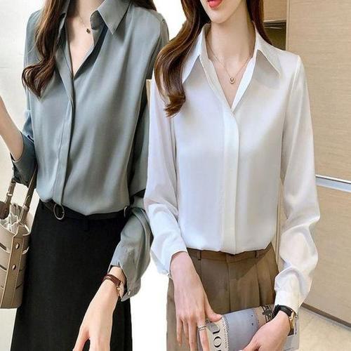 [엄지척]봄블라우스 브이넥 출근룩 면접용 긴팔 블라우스 페미_19642299_667501