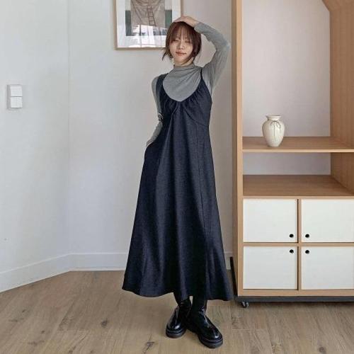 [다잇템][다잇템] 여자 티셔츠 드레스 코르셋 롱 터틀넥 면원단 세트_23351032_588872
