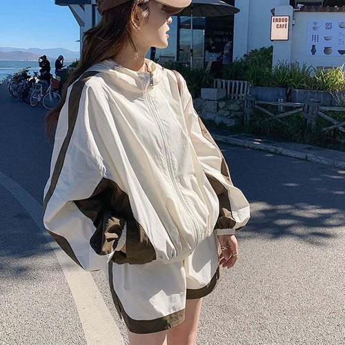 [셀럽하우스]여성 KZDJ3216 캐주얼 루즈핏 바스락 후드 반바지 트레이닝세트