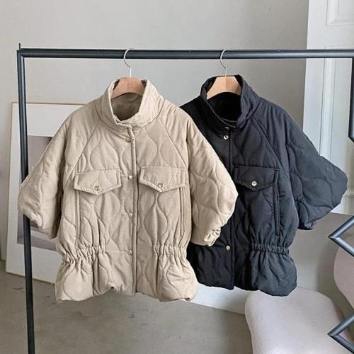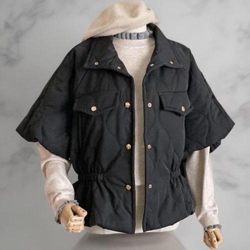 [다잇템][다잇템] 여성 금장단추 드로우코드 반소매 패딩 퀼팅 캐쥬얼 점퍼_23358696_588872