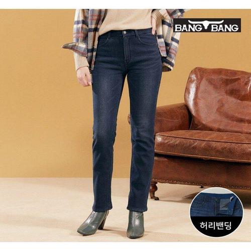[롯데백화점]뱅뱅 여성 인밴드 본딩 기모 루즈핏 스판 청바지 (NQL881)