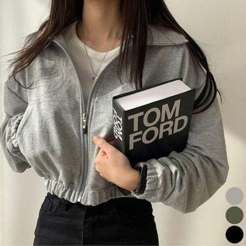 [옷자락]여자 크롭 봄아우터 스트링 하이넥 집업 바람막이 점퍼