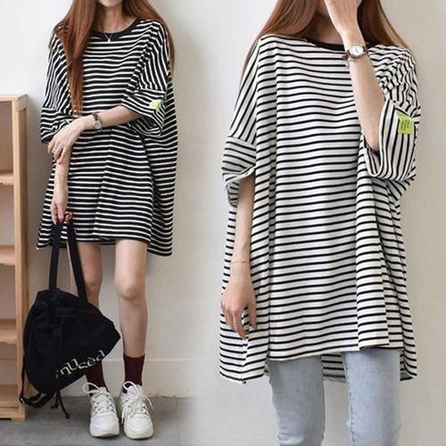 델레바인 릴리 보트넥 단가라 반팔티 M~4XL 티셔츠 빅사이즈 스트라이프