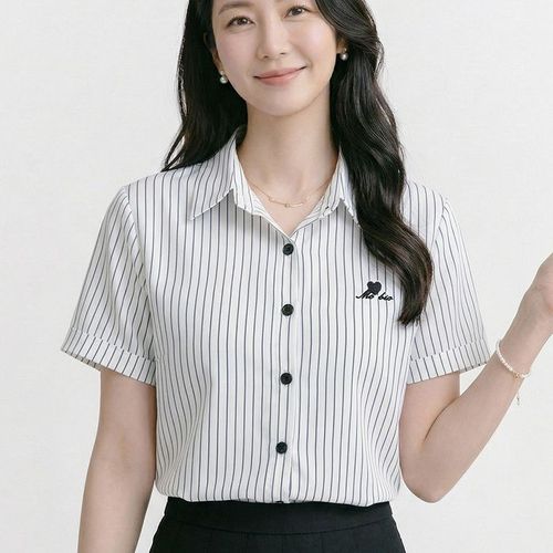NB3101 캐주얼 스트라이프 자수 포인트 반팔 셔츠 블라우스