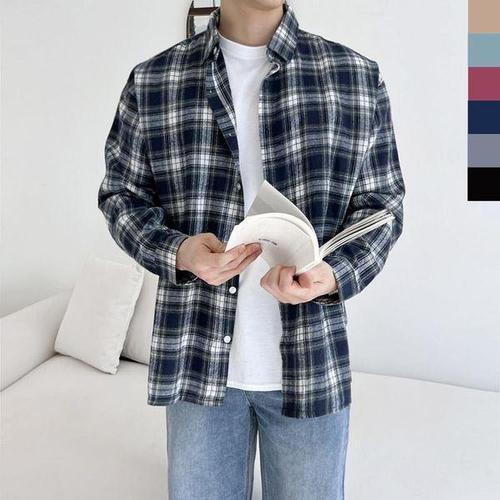 [에이치플러스몰]줄무늬 스트라이프 신상셔츠 빅사이즈 루즈 체크셔츠