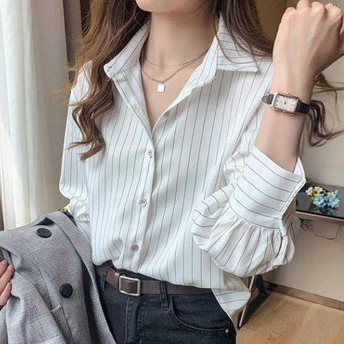 [기타]남방 여성 스트라이프 긴팔 셔츠 데일리 가벼운