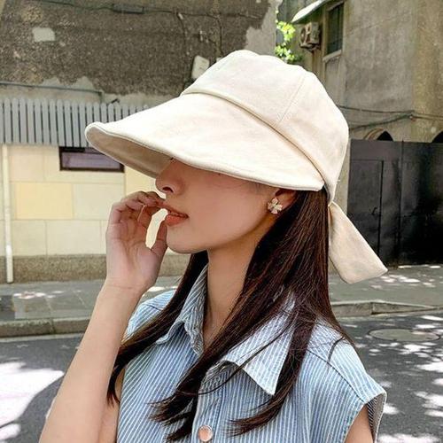 썬캡 진베이지 리본 선캡모자 여성모자 썬캡모자 (45kQa)