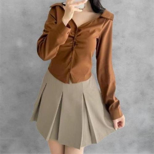 [샵앤] 국산 여성 오비단추 뒤트임 겨울 정장 스커트 NS-WSK-20977