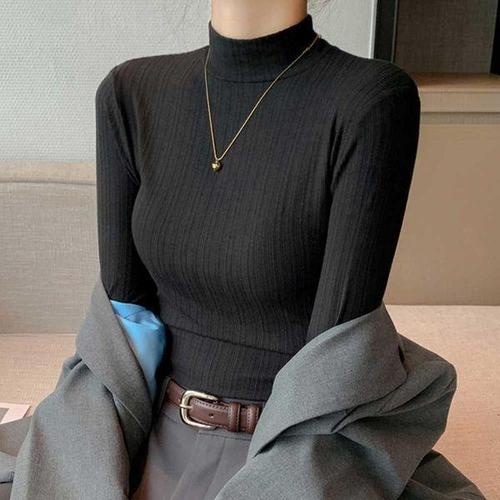 [에이치플러스몰]여성 정장 룩 코디 반폴라 하프넥 긴팔 티셔츠 이너