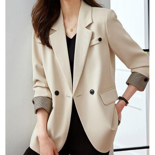 루스리더 여성 카라넥 체크무늬 데일리 정장 자켓 E45