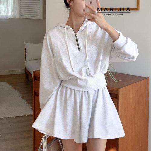 [마리지아][세트][MARIJIA] 하프 후드 맨투맨+치마 바지 세트_MSTA51058