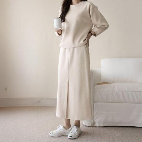 (면/기모) 마이비몰 로렌 레이어드 맨투맨 롱 스커트 투피스 세트