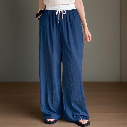[1+1] [옷자락] 여자 여름 투톤 리본밴딩 루즈 와이드핏 쿨팬츠 바지