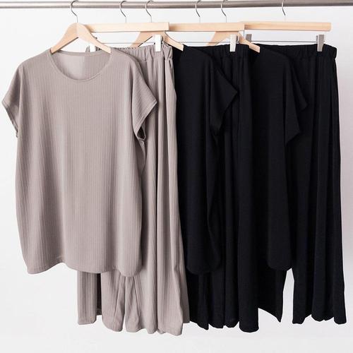 [옷자락]여자 투피스 찰랑핏 쿨팬츠 반팔티셔츠 여름 세트