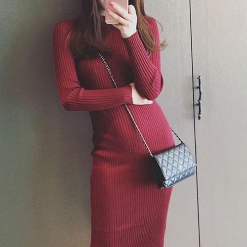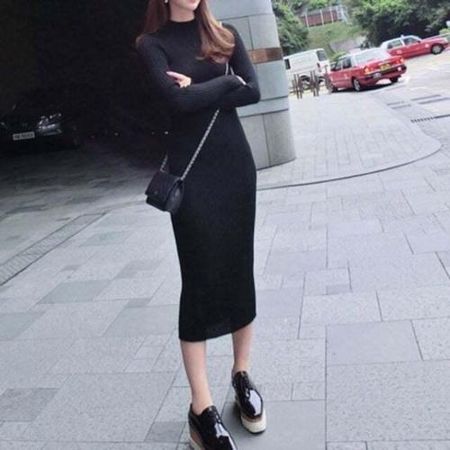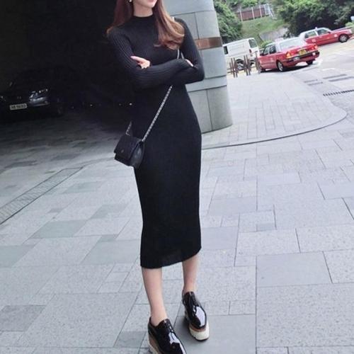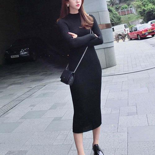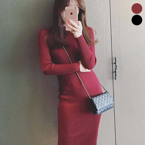 [셀럽하우스]슬림핏 ZRFD5066 타이트한 패션 여성 니트 골지 심플 롱 원피스