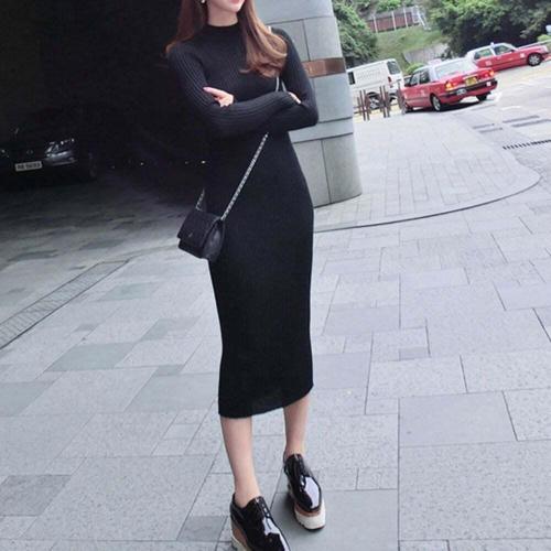 [엄지척]슬림핏 타이트한 패션 여성 니트 골지 심플 롱 원피스_19871965_667501