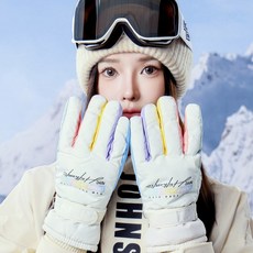 NY20 여성용 스마트터치 방한 스키 보드 캠핑 장갑, 화이트, 1개