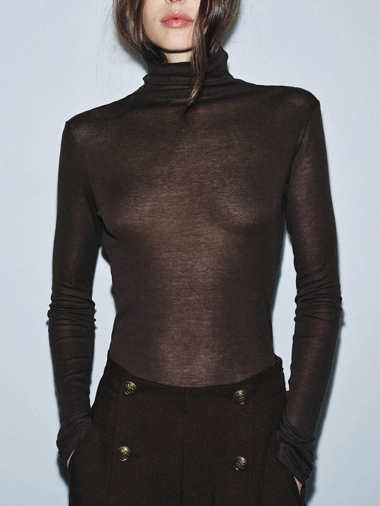 세련된 하이넥 긴팔 슬림핏 스윗 티셔츠 2025년 겨울 신상 우아하고 개성있는 여성 의류